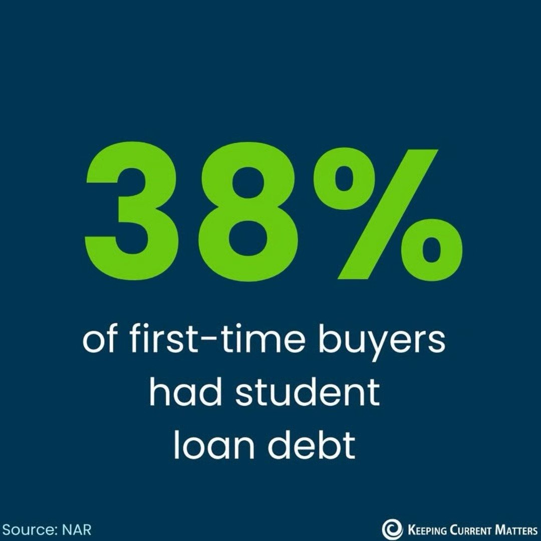 According to an annual report from the National Association of Realtors (NAR), 38% of first-time buyers had student loan debt and the typical amount was $30,000.