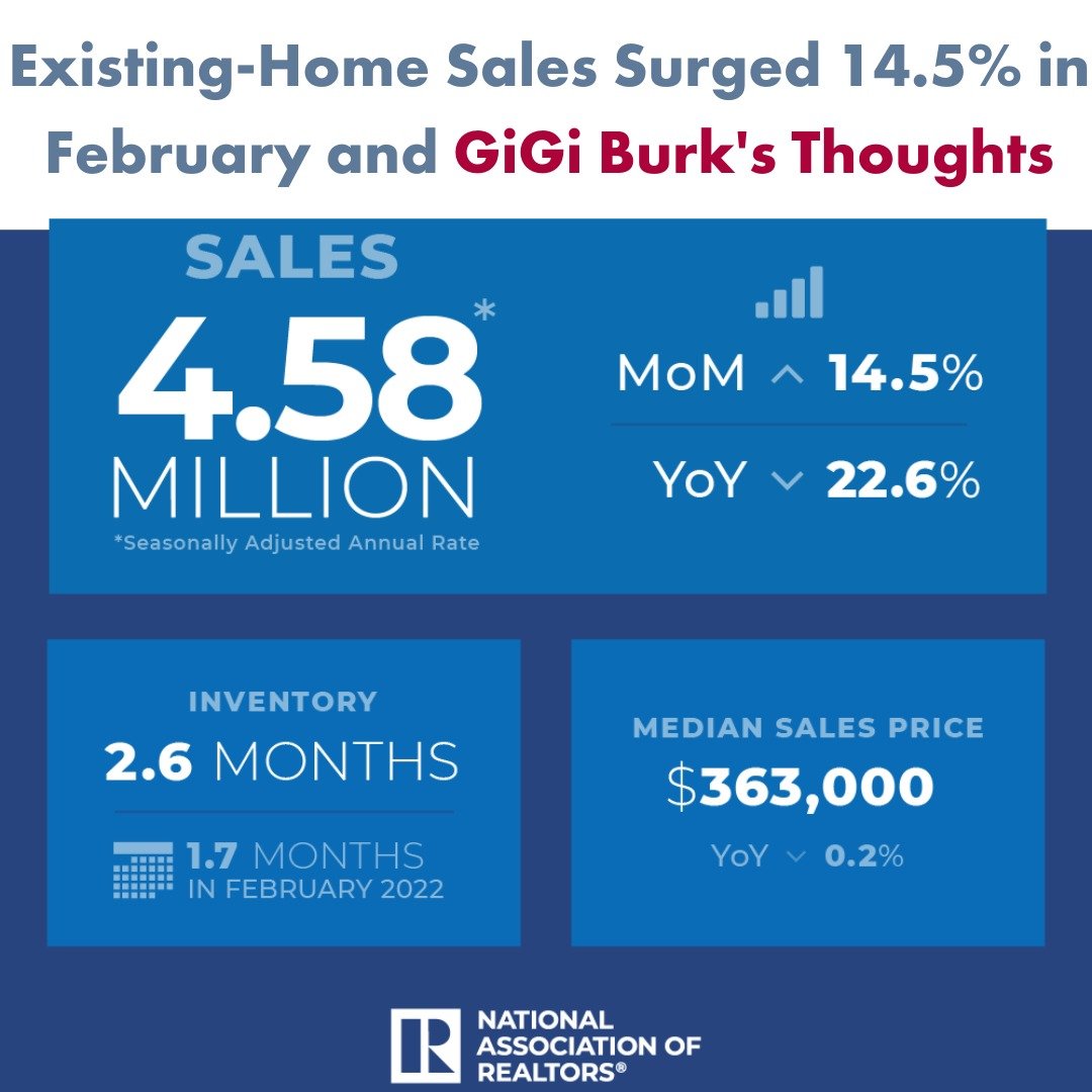 “Existing-home sales surged 14.5% from January to a seasonally adjusted annual rate of 4.58 million in February—its largest monthly percentage increase since July of 2020, according to the National Association of REALTORS®’ (NAR) most recent existing-home sales report.