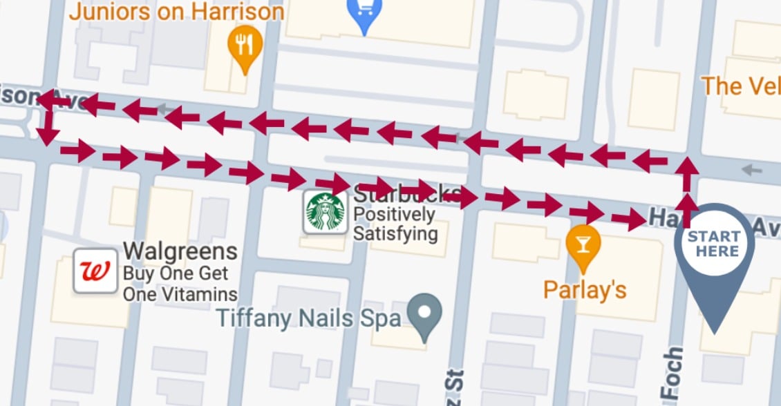 Where: Harrison Avenue Route -- loop route starting at Hynes Charter School, continuing down Harrison Ave. to Vicksburg St., and then returning back on the other side of Harrison Ave. to Hynes