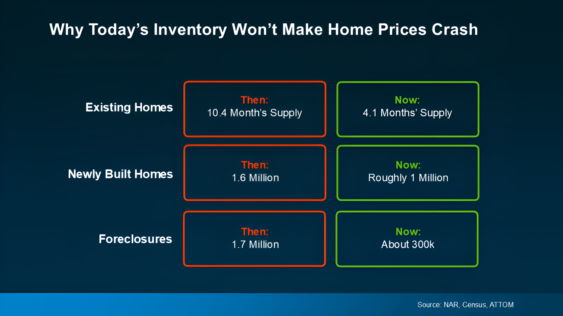 If you’ve heard home prices are going to come crashing down, it’s time to look at what’s actually happening. While prices vary by local market, there’s a lot of data out there from numerous sources that shows a crash is not going to happen. Back in 2008, there was a dramatic oversupply of homes that led to prices crashing. Across the board, there’s an undersupply of homes for sale today. That makes this market a whole different scenario (see chart below):